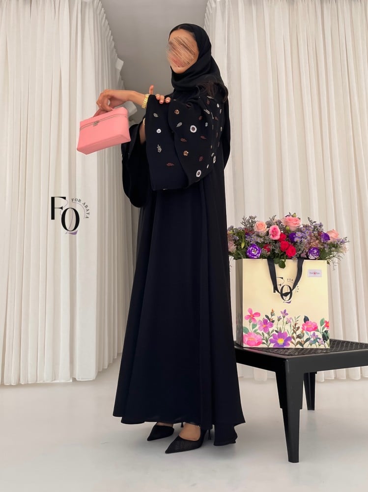 كريب انترنت اسود ( يناسب مع النقاب)قصة العبايه كلوشالاكمام طبقات بترترالطرحه اسود ساده ( يوجد بالعبايه طقطق)